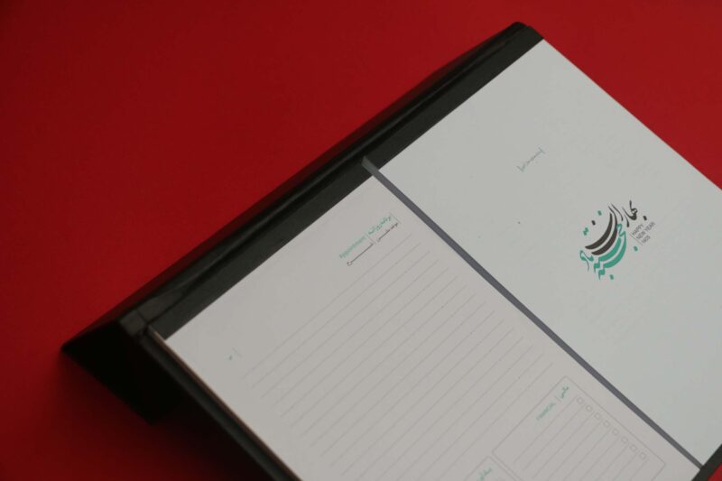 صفحات داخلی از کاغذ تحریر سفید ۷۰ گرم تهیه شده و بهصورت هفتهشمار همراه با بخش یادداشت طراحی شدهاند تا ثبت برنامهها و نکات مهم به شکل همزمان امکانپذیر باشد. صحافی منگنه و پرفراژدار، جدا کردن برگهها را آسان میکند و جلد گالینگور مشکی، ظاهری رسمی و حرفهای به زیردستی میبخشد.