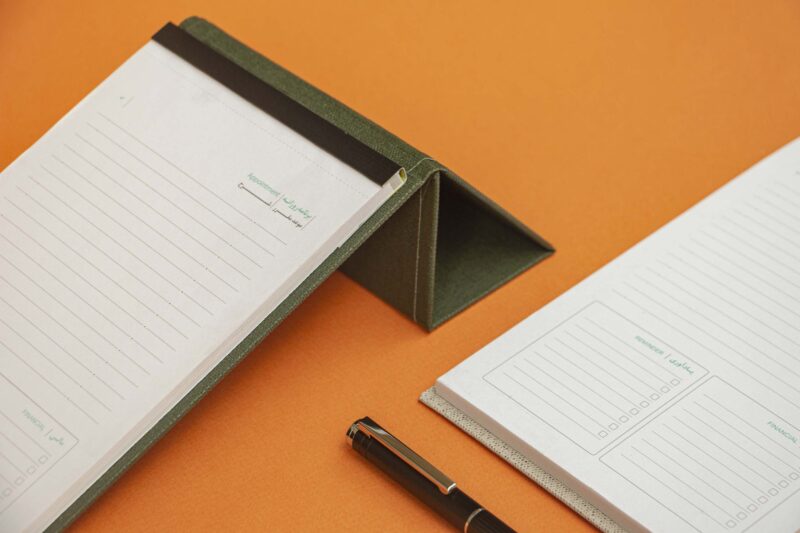 صفحات داخلی از کاغذ سفید ۷۰ گرم تهیه شده و بهصورت پرفراژدار طراحی شدهاند تا جدا کردن برگهها بهراحتی انجام شود. صحافی منگنه در کنار این ویژگی، استفاده روان و مرتب از زیردستی را ممکن میسازد.